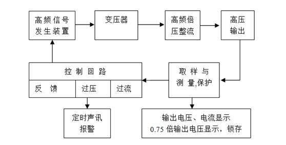 直流高壓發生器的基本原理是:采用先進的PWM調制技術及大功率MOSFET器件,通過中頻倍壓整流而成,并且應用了新的電力電子技術。