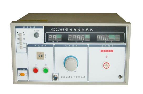 其次,在儀器使用的過程中,1、耐壓測試儀的供電電源必須有良好的接地,否則,當儀器輸出短路時,使儀器外殼帶有高壓,人接觸外殼會發生意外事故。如供電電源沒有接地,請使用儀器電源輸入座旁的輔助接地端,使其與大地良好接觸。2、儀器的“回路端”與被測物地端、外殼或一端連接良好,否則被測物帶有高壓,可能發生意外事故。3、打開電源前一定要將“電壓調節”旋鈕調至“0”位置,打開電源后,還要按一下“復位”按鈕,使輸出電壓斷開,測試燈不亮。4、在按下或彈出交/直轉換開關之前,要保證儀器處于“復位”狀態,否則會損壞本儀器。5、在連接或接觸測試導線前,一定要保證輸出電壓表顯示為“0”以及“復位”狀態,在電源受干擾的環境下,請關機后連接被測物。6、當儀器處于啟動狀態或測試高壓未釋之前,決不能觸及被測物、測試線或高壓輸出端。7、嚴禁將高壓輸出端的高壓與機殼短路,以免損壞高壓變壓器,測試端與機殼不相連,雖然高壓輸出端允許與回路端短路,但應盡可能避免這種短路發生,特別是漏電流選擇在100mA檔時。