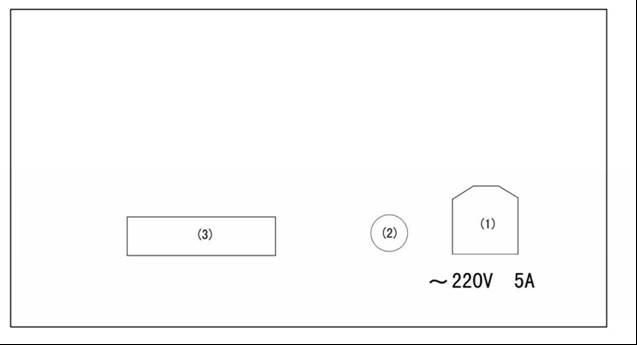 (1)“電源”插座:輸入AC220V、50Hz電源,內(nèi)裝5A/8A保險絲一只。