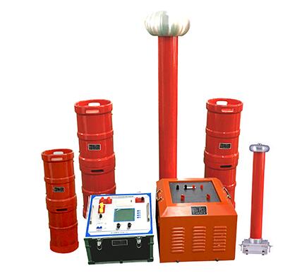 變頻串聯(lián)諧振裝置由變頻電源、激磁變壓器、電抗器和電容分壓器組成。串聯(lián)諧振裝置采用多級疊加的方式,使用的多臺(tái)電抗器可以串聯(lián)、并聯(lián)使用,分壓器是用來測量試驗(yàn)電壓和作為小電容量試品的補(bǔ)償電容的,使得諧振頻率可以在30~300HZ范圍內(nèi)完成多種電力設(shè)備的交流耐壓試驗(yàn)。