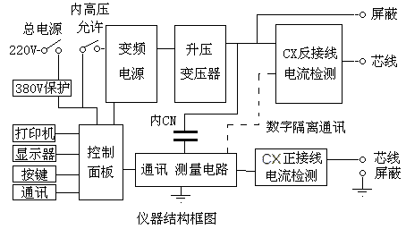 儀器內部裝備了高壓升壓變壓器,并采取了過零合閘、防雷擊等安全保護措施。試驗過程中輸出0.5KV~10kV不同等級的高壓,操作簡單、安全。