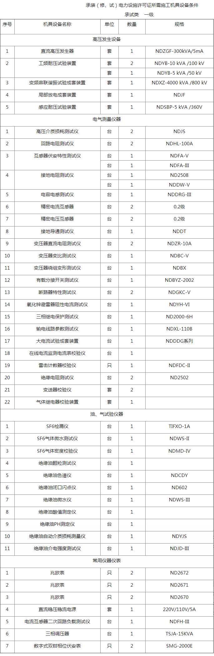 2017年12月1日,國家能源局對電力承試類資質(zhì)設(shè)備進(jìn)行了相應(yīng)的調(diào)整,各個省的承試類資質(zhì)設(shè)備都相同,同時減去了一些電力企業(yè)在實(shí)際工作中并不常用到的設(shè)備,武漢諾頓電氣在本文就簡單介紹新版的承裝(修、試)承試類五級電力設(shè)施許可證所需施工機(jī)具設(shè)備選型指南。